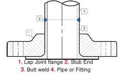 They may be used at all pressures and are available in a full size range. These flanges slip over the pipe, and are not welded or otherwise fastened to it. Bolting pressure is transmitted to the gasket by the pressure of the flange against the back of the pipe lap (Stub End).