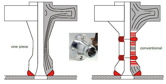 The Weldoflange and Nipoflange is a combination of a Welding Neck flange and a supposedly Weldolet or Nipolet. The 2 components are manufactured in one piece, and not welded.