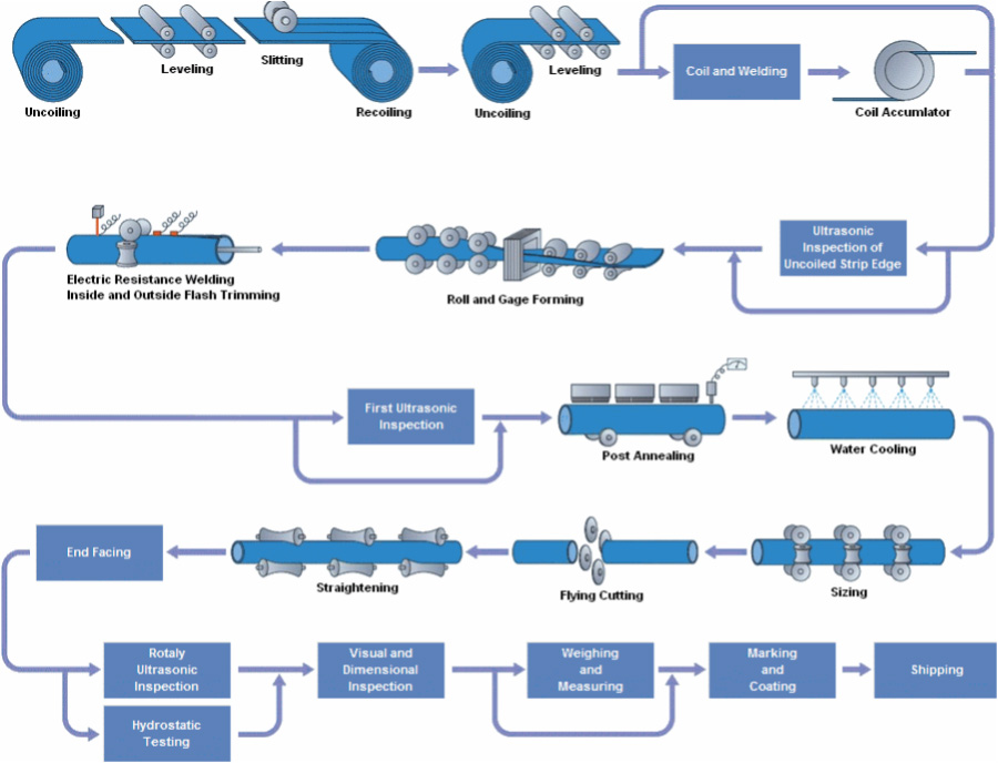ERW process normally applied to the pipe below 24 in, 609 mm. ERW/HFW Longitudinally Welding Steel Line Pipe (Electric Resistance Welding )